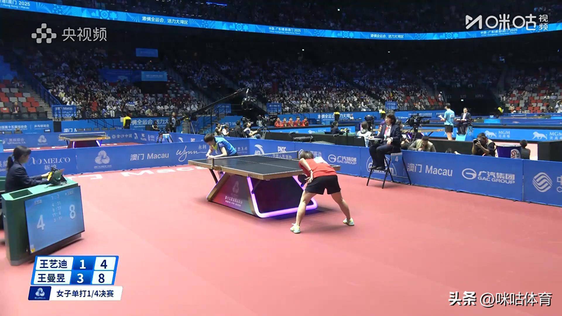 11月13日买球站体育信息,2025宇宙分解会乒乓球女单1/4决赛,王曼昱vs王艺迪。