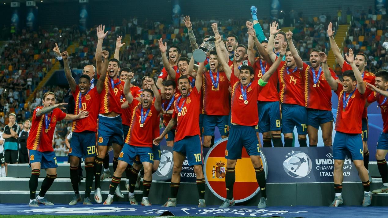 在这十年的后生队熏陶里,他见证了整整一代球员的成长。15年那支U19,决赛的首发气势里有罗德里、梅里诺、阿森西奥和巴列霍,板凳上坐着乌奈-西蒙。19年的U21,冠军主力又多了奥尔莫、法比安-鲁伊斯、奥亚萨瓦尔和马克-罗卡,板凳上还坐着西蒙。