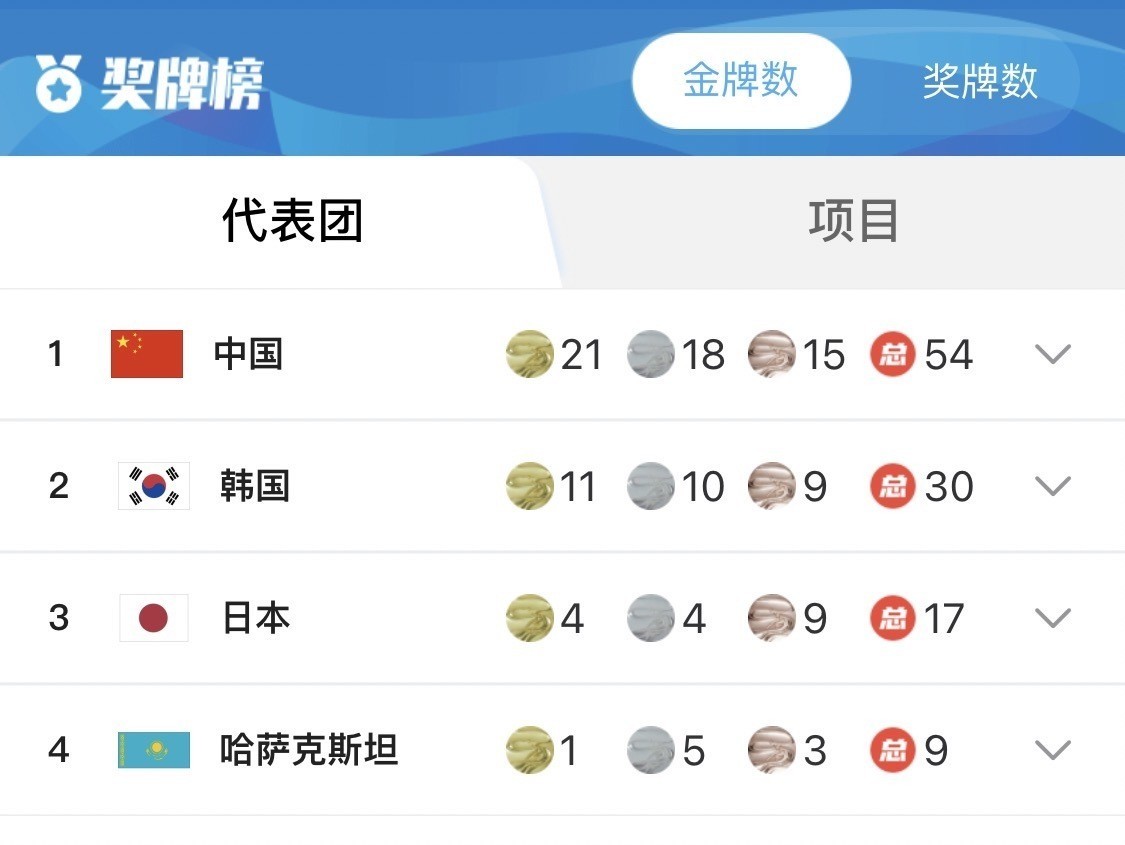 本日,亚冬会奖牌赛一皆划定。中国队凭借优异线路,夺得6金3银1铜,共10枚奖牌。连续领跑奖牌榜!